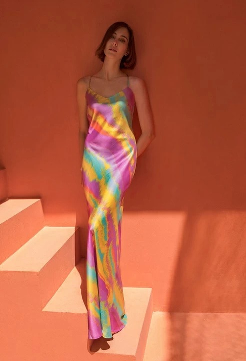 Φόρεμα τύπου lingerie με πολύχρωμο μοτίβο