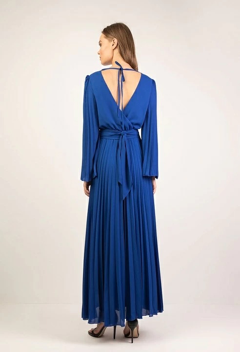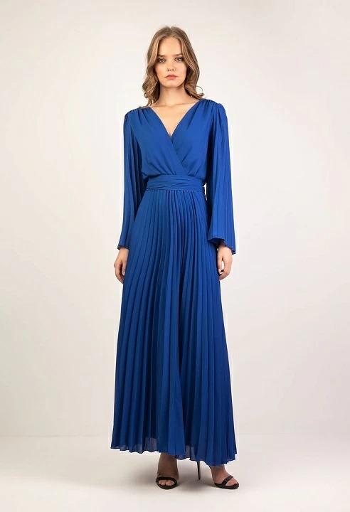 Μακρύ φόρεμα κρουαζέ με μανίκια και πλισέ φούστα