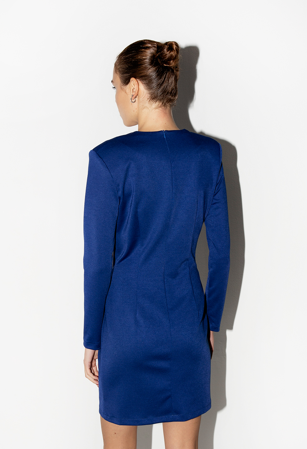 Κοντό ελαστικό φόρεμα με V στο στήθος και μακριά μανίκια σε μπλε ηλεκτρίκ χρώμα