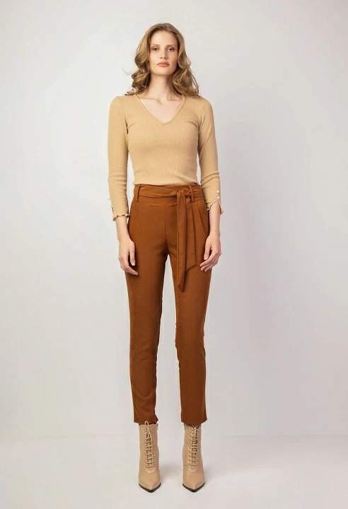Υφασμάτινο παντελόνι σε ίσια γραμμή και κάμελ χρώμα