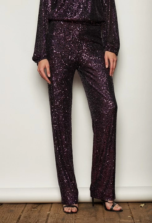 Σετ παγιετένιο μπλούζα με παντελόνα  σε ίσια γραμμή .