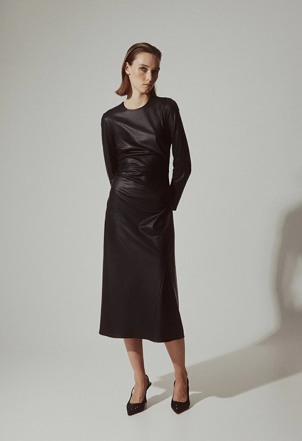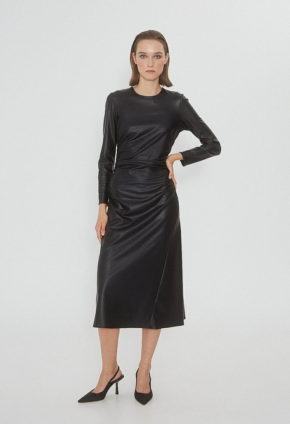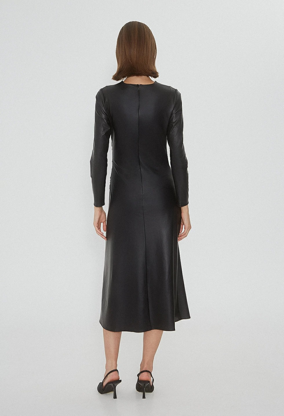 Φόρεμα μίντι δερματίνη με μακριά μανίκια