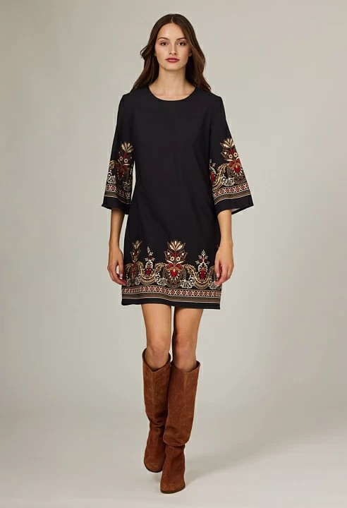 Φόρεμα Κοντό με Εμπριμέ Λεπτομέρειες